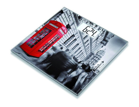 flache Bauhöhe (nur 1,9 cm), Trittfläche aus Sicherheitsglas, effektvolle, weiße Display-Beleuchtung, 40 mm Ziffernhöhe, 100 g Einteilung, Einschaltautomatik, Umstellung von kg/lb/st, inkl. 2 x 3 V CR 2032 Batterien, 5 Jahre Garantie