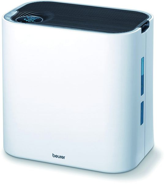 Luftreinigung durch ein dreischichtiges Filtersystem, mit aktueller Raumfeuchtigkeitsanzeige, Einstellung der Wunschluftfeuchte (40-80%), Displaybeleuchtung, Timer-Funktion, Abschaltautomatik, auswechselbarer Filter mit Filterwechselanzeige, herausnehmbarer, beleuchteter Wassertank