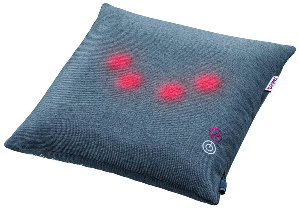 Shiatsu Massage zur Entspannung und Regeneration, für Schultern, Nacken, Rücken und Beine, 4 Massageköpfe - paarweise rotierend - Rechts-/Linkslauf, zuschaltbare Licht- und Wärmefunktion, Abschaltautomatik, universelle Kissenform, abnehmbarer, waschbarer Bezug, verwendbar mit handelsüblichen Kissenbezügen (40 x 40 cm), extra langes Netzkabel, 3 Jahre Garantie