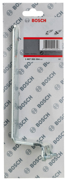 Der Zweilochschlüssel spannt und lockert Aufspannflanschen auf Schleiftöpfen. Er ist im rechten Winkel gebogen.