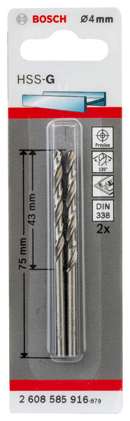 | Kurzbeschreibung | Metallbohrer HSS-G, DIN 338, 4 x 43 x 75 mm, 2er-Pack |