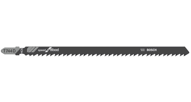 Das T 744 D Speed for Wood Stichsägeblatt macht schnelle gerade Schnitte in Holz. Die scharfgeschliffenen Zähne sind geschränkt, wodurch schnelle Schnitte ermöglicht werden. Das Blatt aus Kohlenstoffstahl (HCS) ist für Weichholz und nicht-abrasive Holzwerkstoffe geeignet. Die große Zahnteilung (4 mm) und besonders große Länge (180 mm) ermöglichen zudem, Holz mit einer Dicke von bis zu 135 mm zu schneiden.