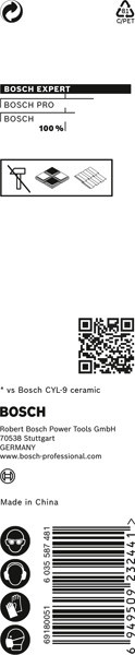 Herausragende Lebensdauer in harten Fliesen! Präzises Anbohren von Löchern dank einer speziell konzipierten Zentrierspitze Da Wandfliesen mittlerweile immer größer und härter werden, ist auch das Bohren von Löchern mit einem Fliesenbohrer immer schwieriger. Aus diesem Grund hat Bosch den EXPERT Hard Ceramic Bohrer entwickelt, mit dem du Hartkeramik trocken bohren kannst. Er ist zudem weitaus langlebiger als unser Benchmark-Bohrer für Fliesen. Der Bosch EXPERT HEX-9 Hard Ceramic Bohrer eignet sich zum Bohren von Keramik. Er kann ohne Schmiermittel oder Kühlung Löcher in harte Fliesen bohren. Außergewöhnlich ausdauernder Bohrer mit Bosch Carbide Technology