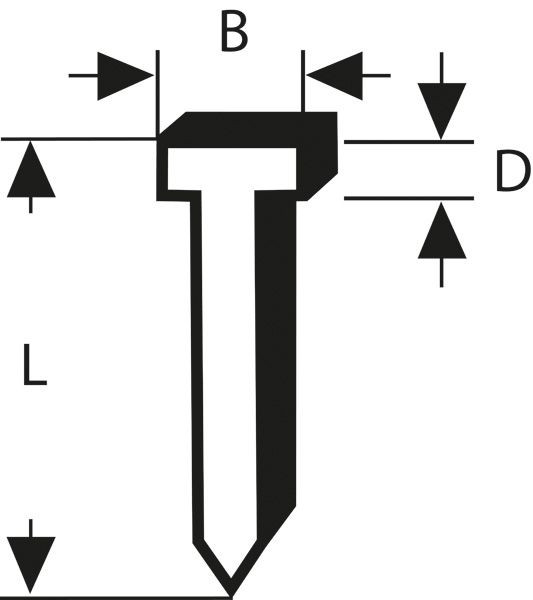 Die Nägel, Typ 47, sind zum Befestigen von dünnen und dicken Materialien geeignet. Sie werden aus Hartstahldraht mit Stiftlängen zwischen 16 und 30 mm hergestellt. Die Kopfbreite beträgt je nach Gerät 1,8 oder 2,8 mm.