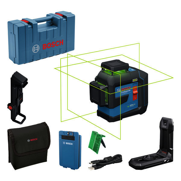 | Kurzbeschreibung | Linienlaser GLL 80-33 G, BA 3.7V 3.0Ah XL + USB-C®-Kabel im Handwerkerkoffer |