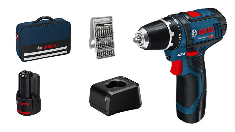 | Kurzbeschreibung | Akku-Bohrschrauber GSR 12V-15, 2 x Akku GBA 12V 2.0Ah, Bit-Set 25-tlg |