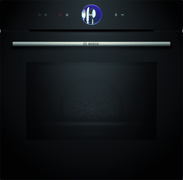 digitaler Bedienring mit TFT Touchdisplay Plus, Temperaturvorschlag Ist-Temperaturkontrolle, Elektronikuhr, Bosch Assist (Gericht auswählen und Gewicht einstellen), Backofenassistent mit Sprachsteuerung (über Amazon Alexa), Elektronik-Uhr, Restwärmeanzeige, Home Connect (WLAN), weitere Beheizungsarten: Ober-/Unterhitze sanft, Ober-/Unterhitze + Mikrowelle, separate Unterhitze, 4D-Heißluft, Heißluft sanft, 4D Heißluft + Mikrowelle, Umluftgrill, Umluftgrillen + Mikrowelle, Großflächengrill, Großflächengrill + Mikrowelle, Kleinflächengrill, Kleinflächengrill + Mikrowelle, Pizzastufe, Air Fry, Sanftgaren, Vorwärmen, Warmhalten, Auftauen, Mikrowelle (Inverter-Technologie) mit 5 Leistungsstufen; Crisp Finish, Schnellaufheizung, Kühlgebläse, PerfectRoast Bratenthermometer, PerfectBake Backsensor, LED-Innenbeleuchtung (abschaltbar), 1-fach Teleskop Auszug pyrolysefähig, Email anthrazit, Selbstreinigungs-Technik (Pyrolyse), Kindersicherung, Sicherheitsabschaltung, Klapptür mit SoftClose und SoftOpen, Zubehör: 1 Backblech, 1 Kombirost und 1 Universalpfanne, Made in Germany