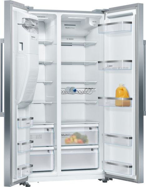 Die NoFrost side-by-side Kühl-Gefrier-Kombination mit Indoor Elektronik bietet Ihnen ein modernes Tür-Display und erspart das Abtauen, der Eis- und Wasserspender mit Wasseranschluss gibt auf Knopfdruck Wasser und (Crushed) Eis aus, das XXL-Fassungsvermögen sorgt für mehr Platz für Lebensmittel, wenn du ihn brauchst, die LED-Beleuchtung ermöglicht es, dass du deine Lebensmittel immer perfekt im Blick hast, die Vario Zone bietet mehr Flexibilität durch variabel einsetzbare Glasböden und Schubladen im Gefrierraum, und die Super Cooling-Funktion kühlt neu eingelegte Lebensmittel schneller und bietet so Schutz für bereits Gekühltes.