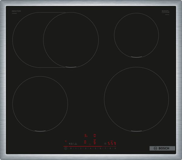 4 Induktions-Kochzonen mit Topferkennung, davon 1 mit zuschaltbarer Bräterzone, PowerBoost-Funktion für alle Kochzonen, 2 stufige Restwärmeanzeige je Kochzone, DirectSelect, TopControl-Digitalanzeige, 17 Leistungsstufen, Favoriten-Taste, QuickStart, Pause, ReStart, Switch Off Timer, Alternativ Wecker, Lautstärke anpassbar, PowerManagement Funktion, automatische Sicherheitsabschaltung, Kindersicherung, umlaufender Rahmen, Home Connect Funktion (WLAN), Smart Hood Automatic -Dunstabzugshaube passt sich während des Kochens automatisch an die Einstellungen deines Kochfeldes an (mit passender Haube)