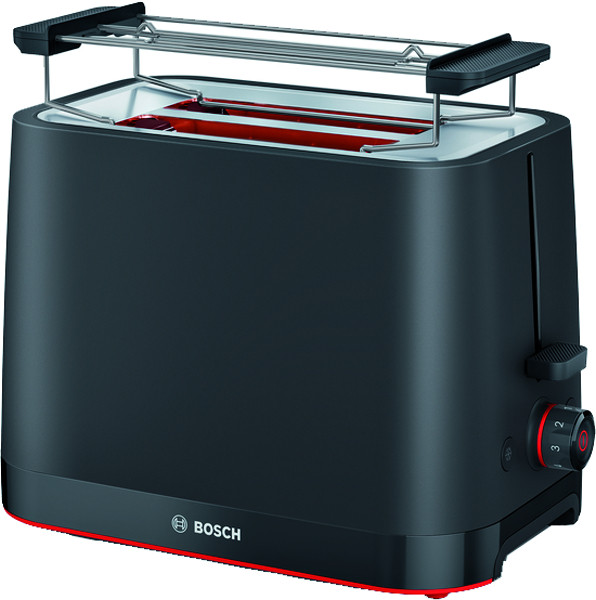 elektronisch gesteuerte Röstgradkonstante mit variabler Bräunungsregelung, Auftau- und Aufwärmfunktion mit jeweils separater, beleuchteter Taste, abnehmbarer und faltbarer Brötchen-Aufsatz für größere Brötchen, beleuchtete Stopp Taste, Brotheber mit High-Lift, herausnehmbare Krümelschublade, Sicherheitsabschaltung bei Klemmen des Toastes