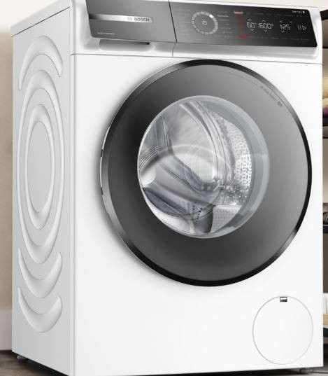 Leistung und Verbrauch Energie-Effizienzklasse¹: A Stromverbrauch² / Wasserverbrauch³: 49 kWh / 46 Liter Nennkapazität: 1 - 9 kg Programmlaufzeit4: 3:39 h:min Schleudereffizienzklasse: A Schleuderdrehzahl**: 400 - 1600 U/Min. Geräuschwert: 71 dB (A) re 1 pW Geräuscheffizienzklasse: A Programme Standardprogramme: Baumwolle, Pflegeleicht, Fein/Seide, Wolle-Handwäsche Iron Assist: Entknittert saubere, trockene Kleidung mit Dampf in 20 Minuten.* Spezialprogramme: Jeans/Dunkle Wäsche, Schleudern/Abpumpen, Schnell/Mix, Sportswear, Spülen, ExtraKurz 15'/30', Hygiene Plus, App, Iron Assist Zusätzliche Programme über Home Connect: Daunen, Gardinen, Handtücher, Hemden, Outdoor, Trommelreinigung mit Erinnerungsfunktion Optionen Home Connect: Fernsteuerung, Energiemanagement, Ferndiagnose, IntelligentDry oder Programm Download. Halte Dein Hausgeräte dank Firmware-Update immer auf dem neuesten Stand. Fleckenautomatik: standardmäßig 6 Flecken-Optionen und 10 weitere über die HomeConnect-App Die Option Dampf reduziert Knitterfalten um bis zu 40%.***** TouchControl-Tasten: Ein/Aus, Fertig in, Fleckenauswahl, Intensiv Plus, Kindersicherung, Memory, Nachtwaschen / Leisewaschen, Power Spülen, Fernstart, Start / Pause mit Nachlegefunktion, Temperatur, SpeedPerfect, Vorwäsche, Drehzahlabwahl/Spülstop Komfort und Sicherheit Nachlegefunktion: Die Nachlegefunktion ermöglicht Ihnen das Nachlegen von Wäschestücken sogar nach Start des Waschprogramms. Intuitive und ergonomische Bedienblende 4D Wash System: höchste Waschleistung durch effektive Durchfeuchtung der Wäsche und Nutzung des Waschmittels. Hygiene: Saubere Wäsche und effektive Beseitigung von Keimen Mini Load: wäscht einzelne Wäschestücke und kleine Beladungen effizient Trommelinnenbeleuchtung: LED VarioTrommel: schonendes und effizientes Waschen EcoSilence Drive: leiser Motor mit langer Lebensdauer 10 Jahre Motorgarantie AntiVibration Design: mehr Stabilität und Laufruhe ActiveWater Plus: für effizienteste Wassernutzung auch bei kleinen Waschladungen dank automatischer Beladungskennung. Geräuschdämmung Digitaler Bedienring mit hinterleuchteter LED-Programmanzeige Anzeige für Überdosierung AquaStop®: eine Bosch Garantie bei Wasserschäden - ein Geräteleben lang* Technische Informationen Stapelbar als Wasch-Trockensäule, mit dem zum Trockner passenden Verbindungssatz (Sonderzubehör) unterschiebbar ab 85 cm Nischenhöhe Gerätemaße (H x B): 84.5 cm x 59.8 cm Gerätetiefe: 59.0 cm Gerätetiefe inkl. Tür: 64.8 cm Gerätetiefe mit geöffneter Tür: 109.0 cm