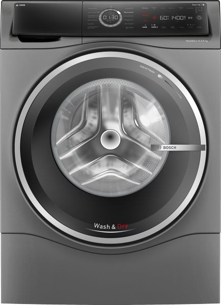 Leistung und Verbrauch Energieeffizienzklasse Waschen und Trocknen¹: D Energieeffizienzklasse Waschen²: A Stromverbrauch³ / Wasserverbrauch4 Waschen und Trocknen: 305 kWh / 75 Liter Stromverbrauch5 / Wasserverbrauch6 Waschen: 52 kWh / 50 Liter Beladung Waschen und Trocknen / Waschen: 1 - 6 kg / 1 - 10.5 kg Programmlaufzeit7 Waschen und Trocknen / Waschen: 8:20 h:min / 4:00 h:min Schleudereffizienzklasse: B Schleuderdrehzahl**: 400 - 1400 U/Min. Geräuschwert: 70 dB (A) re 1 pW Geräuscheffizienzklasse: A Programme Standardprogramme Waschen: Baumwolle, Pflegeleicht, Fein/Seide, Wolle/Handwäsche Spezialprogramme Waschen: Automatik Sanft, ExtraKurz 15', Schleudern/Abpumpen, weitere Programme über Home Connect, Sportswear, Spülen Alle gängigen Waschprogramme können wahlweise auch als reines Trockenprogramm oder als kombiniertes Wasch- und Trockenprogramm genutzt werden Standardprogramme Trocknen: Baumwolle, Pflegeleicht Spezialprogramme Trocknen: Auffrischen, Waschen & Trocknen 45' Zusätzliche Programme über Home Connect: Hemden, Feuchtigkeit entfernen, Wäsche erwärmen, Fast Hygiene, Automatik Optionen Home Connect: Fernsteuerung, Energiemanagement, Ferndiagnose, IntelligentDry oder Programm Download. Halte Dein Hausgeräte dank Firmware-Update immer auf dem neuesten Stand. i-DOS: dosiert vollautomatisch Flüssigwaschmittel und Weichspüler Fleckenautomatik - 3 Flecken stehen auf der Blende und weitere 13 Flecken stehen über Home Connect zur Verfügung SpeedPerfect: perfekt sauber in bis zu 65% weniger Zeit. *** Optionen Waschen: Bügelleicht, Drehzahlwahl, Extra Spülen, Fleckenautomatik, HygieneCare, i-DOS 1, i-DOS 2, Kindersicherung, Lieblingsprogramme, Fernstart, SpeedPerfect, Start / Pause, Temperaturwahl, Vorwäsche, Zeitvorwahl Optionen Trocknen: Bügeltrocken, Solo Trocknen, Schranktrocken, Schranktrocken+, Trockenziel, Waschen + Trocknen Trocknen-Option für die meisten Waschprogramme AutoDry-Funktion, Zeitprogramme Komfort und Sicherheit Nachlegefunktion: Die Nachlegefunktion ermöglicht Ihnen das Nachlegen von Wäschestücken sogar nach Start des Waschprogramms. Außergewöhnlich komfortable Steuerung dank abgeschrägter Bedienblende für bessere Lesbarkeit und mehr Ergonomie AquaStop®: eine Bosch Garantie bei Wasserschäden - ein Geräteleben lang* EcoSilence Drive: leiser Motor mit langer Lebensdauer 10 Jahre Motorgarantie Großes Touch LED-Display für Statusanzeige, Temperaturwahl, Schleuderdezahl, Restzeitanzeige, Endezeitvorwahl und Beladungsempfehlung Vario-Trommelsystem: schonendes oder intensiveres Waschen Trommelinnenbeleuchtung: LED Nutzungszähler: Zählt abgeschlossene Programme ActiveWater Plus: für effizienteste Wassernutzung auch bei kleinen Waschladungen dank automatischer Beladungskennung. AntiVibration Design: mehr Stabilität und Laufruhe Geräuschdämmung Wartungsfreier Wärmetauscher: automatische Flusenentfernung Türanschlag links Metallverschlusshaken Technische Informationen Stapelbar als Wasch-Trockensäule, mit dem zum Trockner passenden Verbindungssatz (Sonderzubehör) unterschiebbar ab 85 cm Nischenhöhe Gerätemaße (H x B): 84.8 cm x 59.8 cm Gerätetiefe: 62.2 cm Gerätetiefe inkl. Tür: 65.4 cm Gerätetiefe mit geöffneter Tür: 114.2 cm