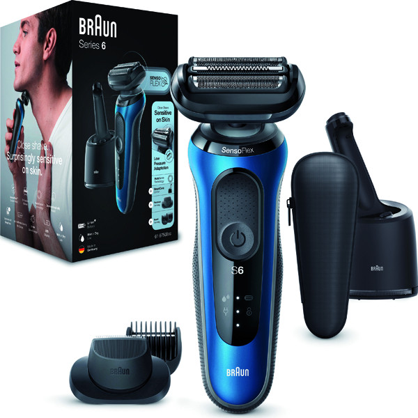 gründliche und sanfte Rasur dank des dermatologisch getesteten beweglichen SensoFlex-Scherkopfes und SensoFoil-Klingen, die eine Druckanpassung ermöglichen, AutoSense-Technologie erkennt die Bartdichte und passt die Leistung entsprechend an, EasyClick-System (kann mit einem einfachen Klick umgerüstet und die Aufsätze ausgetauscht werden), inkl. Präzisionstrimmer-Aufsatz und Barttrimmer-Aufsatz für Bärte von 0,5 mm bis 7 mm, 100 % wasserdicht, Li-ION-Akku, Akkukapazität 50 Min., Schnell-Ladefunktion für eine Rasur 5 Min., 4-in-1 Reinigungsstation (SmartCare Center), Netzteil, Reise-Etui, Made in Germany