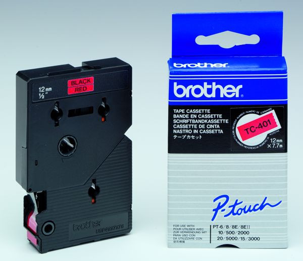 P-Touch Schriftband-Kassette 12mm schwarz auf rot, laminiert, 7,7m