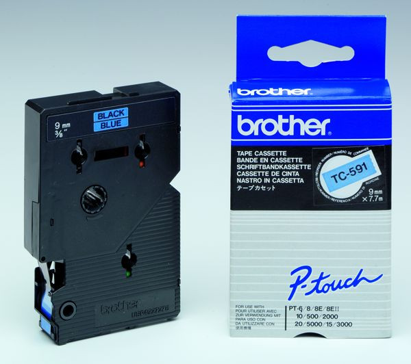 P-Touch Schriftband-Kassette 9mm schwarz auf blau, laminiert, 7,7m