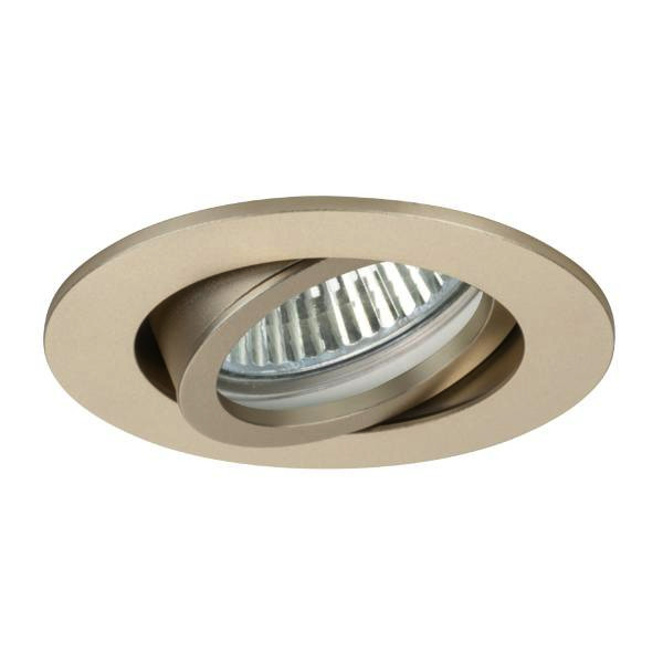 Einbaustrahler, GU10, champagner matt, rund. Ausgeführt in kompakter Bauform für werkzeuglose Schnellmontage zum Deckeneinbau. Ausführung: GU10, Montageart: Einbaumontage, Montageort: Deckenmontage, Material: Aluminium, Schutzart raumseitig: nach DIN EN 60529: IP20, Schutzklasse: (EN 61140) II, Spannung: 230V AC 50Hz, Leistung: 10 W, Anzahl der Leuchtmittel / Fassungen: 1 Stück, Verstellbarkeit: schwenkbar, ohne Betriebsgerät, Art der Dimmung: sonstige.