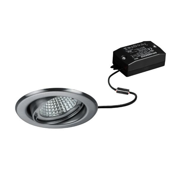 LED-Einbaustrahlerset, schaltbar, chrom matt, rund. Ausgeführt in kompakter Bauform für werkzeuglose Schnellmontage zum Deckeneinbau. Ausführung: ohne Fassung, Montageart: Einbaumontage, Montageort: Deckenmontage, Material: Stahl / Messing / Aluminium / Glas / Kunststoff, Schutzart raumseitig: nach DIN EN 60529: IP20, Schutzklasse: (EN 61140) II, Spannung: 230V AC 50Hz, Leistung: 6 W, Anzahl der Leuchtmittel / Fassungen: 1 Stück, Lichtstrom: 730 lm, Farbtemperatur: 3.000 K, Lichtfarbe: weiß, Abstrahlwinkel: 38°, Verstellbarkeit: schwenkbar, Mit Betriebsgerät: Ja, Dimmbar: Nein, Art der Dimmung: schaltbar.