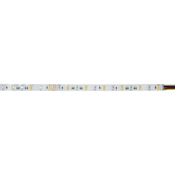 RGBW LED-Flexplatine 5 m, 14,4 W / m, IP00, weiß, Lichtfarbe: RGBW, 3.000K, CRI > 90 LED-Flexplatine zur Länge: 5000.0 mm Lampenleistung je Meter: 14.4 W/m, Lichtstrom je Meter: 620.0 lm/m, Schutzart raumseitig: IP00, Schutzklasse: III, Spannung: 24V DC, Abstrahlwinkel: 120.0 °, 60 LEDs pro Meter, Chip-Abstand (Short Pitch) : 16,7mm. Zur Individuellen Anwendung kann die LED-Flexplatine alle 200 mm eingekürzt werden. Die maximale Systemlänge von 5.000mm darf mit einer Einspeisung nicht überschritten werden.