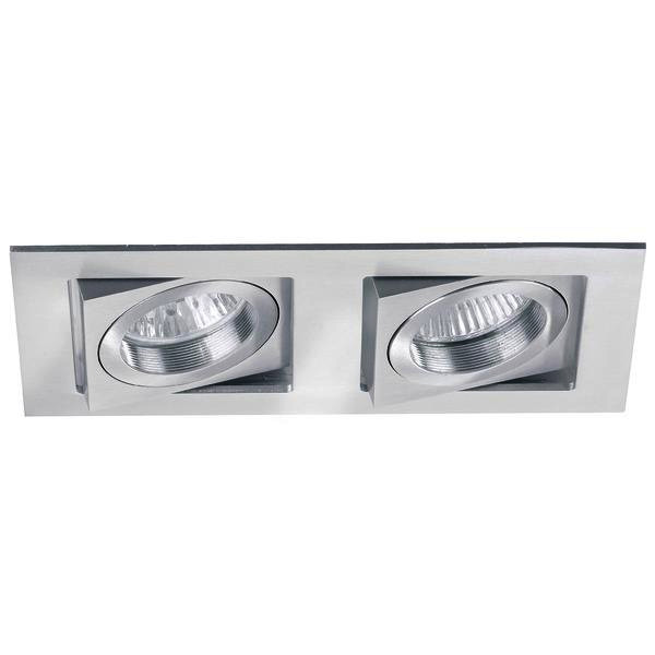Einbaustrahler, GX5,3, 2-fach, aluminium matt, quadratisch. Ausgeführt in kompakter Bauform für werkzeuglose Schnellmontage zum Deckeneinbau. Ausführung: GX5,3, Montageart: Einbaumontage, Montageort: Deckenmontage, Material: Aluminium, Schutzart raumseitig: nach DIN EN 60529: IP20, Schutzklasse: (EN 61140) III, Spannung: 12V, Leistung: 50 W, Anzahl der Leuchtmittel / Fassungen: 2 Stück, Lichtfarbe: weiß, Verstellbarkeit: schwenkbar, ohne Betriebsgerät, Art der Dimmung: Abhängig vom Betriebsgerät.
