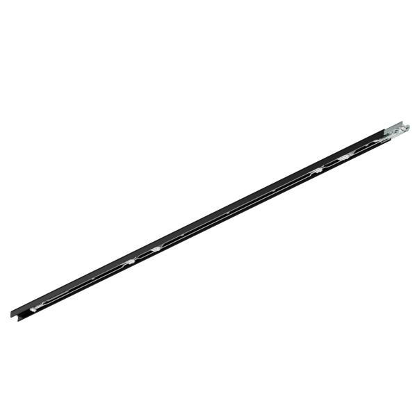 Tragschiene 11-polig, schwarz, rechteckig. Rechteckige Aluminium-Tragschiene für modulares Schnellmontage-Lichtbandsystem zur mechanischen Aufnahme und elektrischen Versorgung modularer Systemkomponenten sowie zur Integration systemkonformer Einspeise- und Abschlusskomponenten. Verwindungssteifes Aluminiumprofil mit optimierter Profilgeometrie zur hohen Biege- und Längsstabilität für Industrie-, Logistik- und Arbeitsbereiche. Tragschienenlänge 2.876 mm, Tragschienenbreite 64,7 mm, Höhe 45,5 mm. Mit integrierter halogenfreier Durchgangsverdrahtung 2,5 mm², 11-polig (L1, L2, L3, N, PE, DIM+, DIM-, EL1, EL2, EN1, EN2), verpolungssicherer steckverbindung und durchgängiger Schutzleiterführung. Geeignet für schaltbare sowie dimmbare Anwendungen mit erweiterter Leiterinfrastruktur. Geeignet für Direkt- und Abhängemontage (Seil/Kette). Schutzklasse I gemäß EN 61140. Schutzart IP20 gemäß DIN EN 60529. Zulässige Umgebungstemperatur (ta) -20 °C bis +35 °C. Oberfläche pulverbeschichtet, Farbe schwarz (RAL 9005). Montageart: Anbaumontage, Material: Aluminium, Abmessung Profil: L: 2.876 mm x B: 64,7 mm x H: 45,5 mm.
