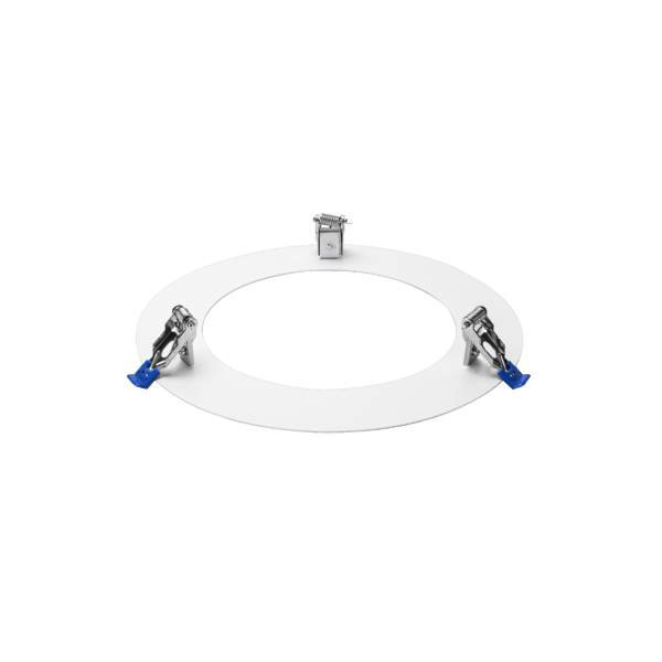 Reduzierring zu Einbaudownlight, strukturweiß, rund. Reduzierring für Einbaudownlights, Durchmesser 230 mm, Innendurchmesser 150 mm, Stärke 1,5 mm, mit drei Befestigungsfedern für den Ring an sich im Teilkreis von 180 mm Material: Stahl.