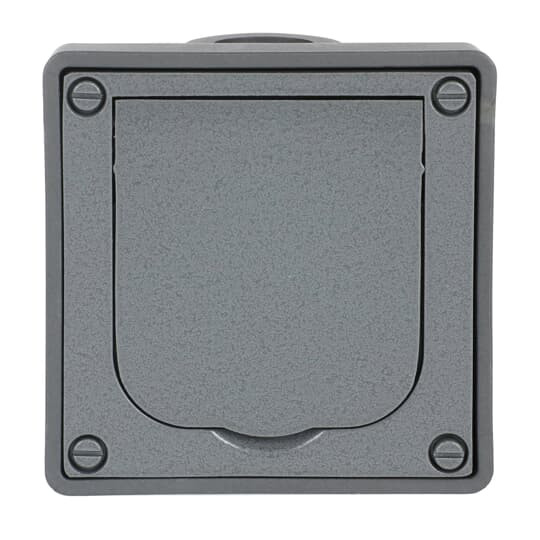 Für Wandeinbau, mit integriertem erhöhtem Berührungsschutz, Gehäuseoberteil und Klappdeckel aus Aluminium-Druckguss, Einbaugehäuse aus stark beanspruchbarem Hochleistungskunststoff, Installation wandbündig mit 2 Einführungen M 20, mit Steckklemmen, 2 P + E, Nennspannung: 250 V~, Nennstrom: 16 A
