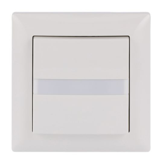 Einbaufertige Bewegungsmelder-Tastschalter-Kombination (Set-Verpackung).