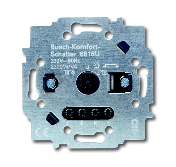 3-Leiter-Anschlusstechnik (Neutralleiter erforderlich). Für Busch-Komfortschalter Sensoren 6815-xxx. Betrieb in Wechselschaltungen über Taster-Nebenstelle möglich. Bedienung auch über konventionelle Taster (2020 US, 2021/6 UK) möglich.