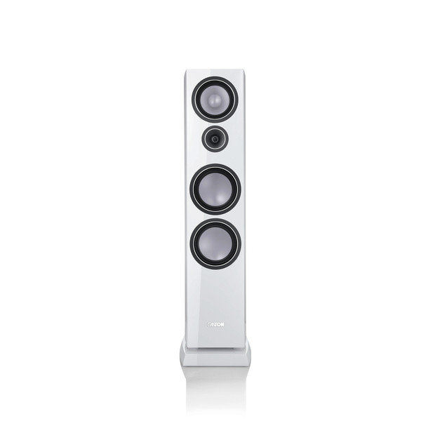 3-Wege Bassreflex Standlautsprecher, Nenn- / Musikbelastbarkeit: 180 / 340 Watt, Übertragungsbereich: 20…40.000 Hz, Übergangsfrequenz: 170 / 3.000 Hz, Tieftonchassis: 2 x 192 mm, Titanium-Graphit (Wave-Sicke), Mitteltonchassis: 1 x 174 mm Titanium-Graphit (Wave-Sicke), Hochtonchassis: 1 x 25 mm Keramik, Impedanz: 4...8 Ohm, Abmessungen (BxHxT) 29 x 110,5 x 38 cm