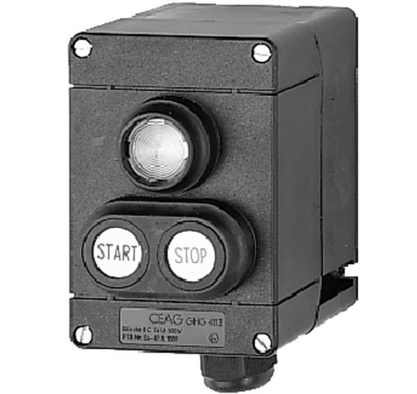 Signalleuchte 20-250 V AC/DC Ex-e Befehlsgeber GHG 411 82 - Polyamid für Zone 1/21, Leitungseinführungen: 1 x M25, Polyamid, SIL; DDT, Pos. 2: SIL Signallampe, 20 - 250 V AC/DC, Pos. 1: DDT Doppeldrucktaster, 1S +1Ö, Kontakt Material: Silberkontakte, Leitungseinführungen/ Gehäusebohrungen: 1 x M25 Ex-e Leitungseinführungen für Leitungen von Ø 8 - 17 mm, Gehäusematerial: Polyamid, Bemessungsspannung: 690 V AC, Bemessungsstrom: 16 A, Bemessungsein-/ Ausschaltvermögen AC15 gemäß EN 60947-5-1: Ue 250 V / Ie 6 A (Ex 41) / Ue 500 V / Ie 4 A (Ex 41) / Ue 230 V / Ie 6 A (Ex 23) / Ue 500 V / Ie 4 A (Ex 23), Kennzeichnung nach 94/9/EG: Ex II 2 G Ex e d ib m IIC T6 / Ex II 2 D Ex tD A21 IP66 T80°C, EG-Baumusterprüfbescheinigung: PTB 00 ATEX 3117, Zulässige Umgebungstemperatur: -20 °C bis 40 °C, Abmessungen (L x B x H): 125 x 85 x 77.5 mm, Gewicht: 0.65 kg, Schutzklasse: I, Schutzart nach EN 60529: IP66 Anzahl der Befehlsstellen: 2 Anzahl der Drucktaster: 1 Anzahl der Leuchtmelder: 1 Geeignet für NOT-AUS: Nein Bemessungssteuerspeisespannung Us bei AC 50 Hz: 690 V Bemessungssteuerspeisespannung Us bei AC 60 Hz: 690 V Farbe des Gehäuseoberteils: grau Werkstoff des Gehäuses: Kunststoff Schutzart (IP): IP66 Anzahl der Kontakte als Schließer: 1 Anzahl der Kontakte als Öffner: 1