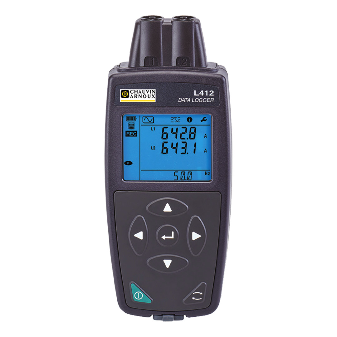 Der Chauvin Arnoux Datenlogger L412 ist ein leistungsstarkes und vielseitiges Messgerät zur Aufzeichnung von Stromverläufen. Durch seine zwei Messkanäle und Kompatibilität mit einer breiten Palette an Stromwandlern eignet er sich optimal zur Wartung, Fehlersuche und Überwachung von Strömen. Robust, mobil und einfach zu bedienen – ideal für den industriellen Einsatz sowie für Anwendungen im Bereich der Elektroinstallation. Durch die Aufzeichnungen mit Zeitstempelung ist dieser Logger bestens für die Erkennung von Schwankungen oder Anomalien im gemessenen Signal geeignet. Die verschiedenen Kommunikationsmöglichkeiten ermöglichen den Einsatz des Datenloggers als fernablesbares Strommessgerät. Über den integrierten Webserver besteht die Möglichkeit mit einem Smartphone über einen beliebigen Webbrowser eine Fernverbindung zum Gerät herzustellen. Die Analyse der aufgezeichneten Ereignisse wird mit der Software Datalogger Transfer vereinfacht: Gerätekonfiguration, Echtzeitüberwachung der Messungen und Darstellung der aufgezeichneten Messungen in grafischer oder tabellarischer Form.