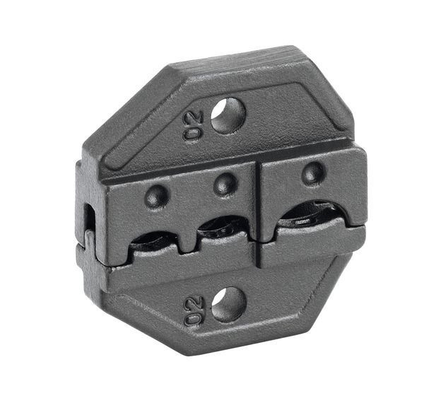 Pressprofileinsatz lose, asymmetrisch, Standardpressung, 1 Paar zu 106144, isolierte Kabelschuhe nach DIN: 0,5 bis 1 (rot), 1,5 bis 2,5 (blau), 4 bis 6 mm² (gelb), AWG: 10/12 - 14/16 - 18/20, mit Ovalpressung