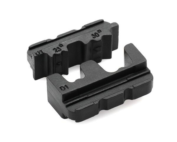 Presseinsatz für isolierte und nicht isolierte Aderendhülsen 25 mm² und 50 mm², click 'n' crimp, Trapez-Ident-Pressung (D1), optimierte Pressform, besonders geeignet für ausgedünnte, feindrähtige Leiter nach IEC 228, 1 Paar