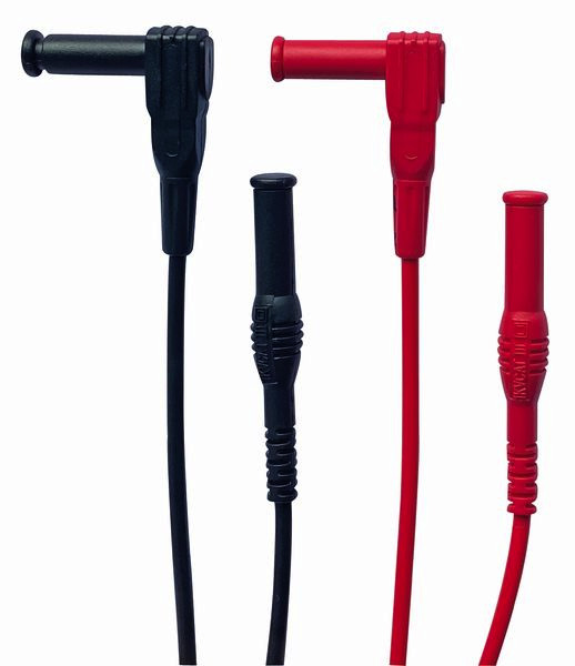 Messleitungs-Set, Bananenstecker. Mit 2 mm-Prüfspitzen aus Edelstahl, CATIII / 1.000 V. Strombelastbarkeit bis 16A. Mit 4 mm- Sicherheitsstecktechnik gemäß DIN VDE 0411 / EN 61010. Länge: 1000 mm