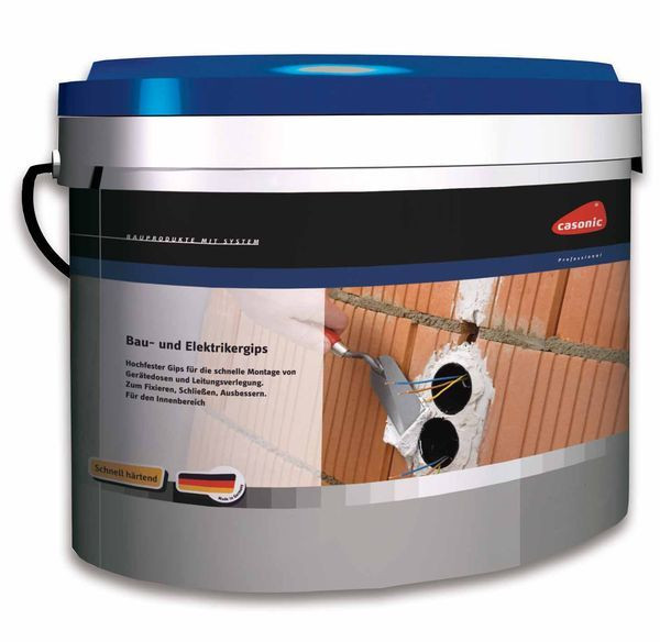 Bau- und Elektrikergips, zum Einsetzen von Steckdosen, Füllen von Löchern, für Ausbesserungs- und Installationsarbeiten, Dübeln, Glätten und Fixieren im Innenbereich. Speziell abgestimmt für Bau- und Elektrikerarbeiten. Auch für Form- und Modellierarbeiten bestens geeignet, Verarbeitungszeit ca. 15-20 Minuten, Mischungsverhältnis ca. 8 l Wasser / 10 kg, Lagerfähigkeit ca. 6 Monate, im Kunststoffeimer 10 kg- VE=1Palette; 44 Eimer
