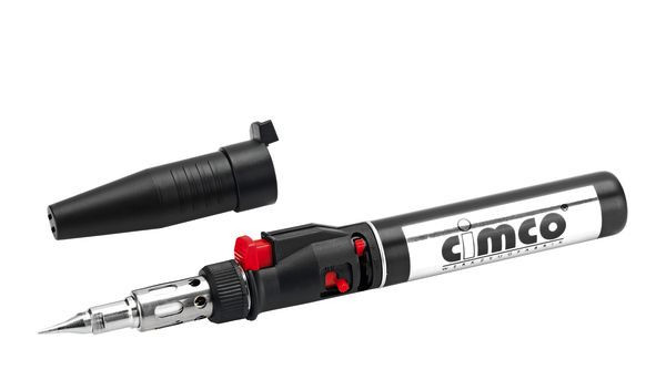 Gaslötkolben Einzelgerät, mit Verschlusskappe und Sperrvorrichtung. Für anspruchsvolle Lötaufgaben ohne hinderliche Kabel, überall dort, wo eine Stromversorgung nicht möglich ist, z. B. im Installations-, Service- und Reparaturbereich. Dank diverser auswechselbarer Aufsätze auch für Wärmeschrumpfarbeiten, Mikroschweißen und zum Schneiden von Kunststofffolien und -platten geeignet. . Mit elektronischer Zündung, Leistung stufenlos regelbar, Temperaturen bei offener Flamme bis 1.300°C, Löten bis 500 °C, Wärmeschrumpfen bis 500°C, Brenndauer ca. 60 min.