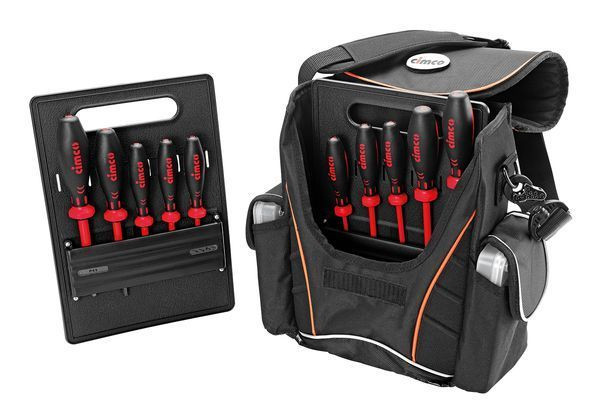Elektriker-Umhängetasche, eine professionelle Aufbewahrungstasche mit flexiblem Klemmhaltesystem zur Aufnahme von Werkzeugen aller Art. Ausgestattet ist die Tasche mit 2 herausnehmbaren Werkzeugplatten, Schultertrageriemen, 2 seitliche Einsteckfächer und gepolsterter Tragegriff. Inklusive zwei kleinen Sortierkästen. Gewicht: 1300 g. Maße: B/T/H: 200x100 x300 mm.