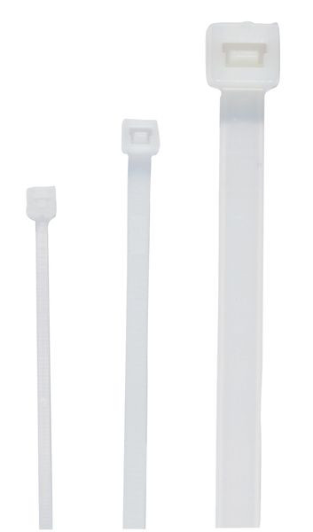Kabelbinder aus Pa 6.6, naturfarbig, BxL 2,5x75 mm, Kabelbaum 2-16 mm, 80 N, Halogenfrei, Selbstverlöschend, Brennbarkeitsklasse UL94 V-2, Temperaturbeständigkeit -40°C bis 85°C. Zertifizierung: UL, RiNA, DNV, LR, Bureau Veritas.