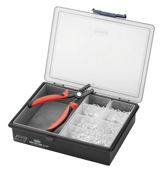 Nicht isolierte Aderendhülse, 3500 Stück sortiert, in raaco-Sortimentskasten PSC-Vario 240, mit nicht isolierten Aderendhülsen, mit Presszange CIMCO-Artikelnr. 10 1906. Ausführung: 0,75 mm² - 6 mm lang - 1000 Stück (CImco-Artikelnr. 18 2052), 1,0 mm² - 6 mm lang - 1000 Stück (Cimco-Artikelnr. 18 2056); 1,50 mm² - 7 mm lang - 750 Stück (Cimco-Artikelnr. 18 2060); 2,50 mm² - 7 mm lang - 750 Stück (Cimco-Artikelnr. 18 2070)