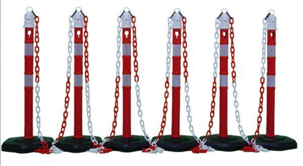 | Kurzbeschreibung | Kettenständer aus Kunststoff, Rot-Weiss Reflektierend, 6 Pfosten |
