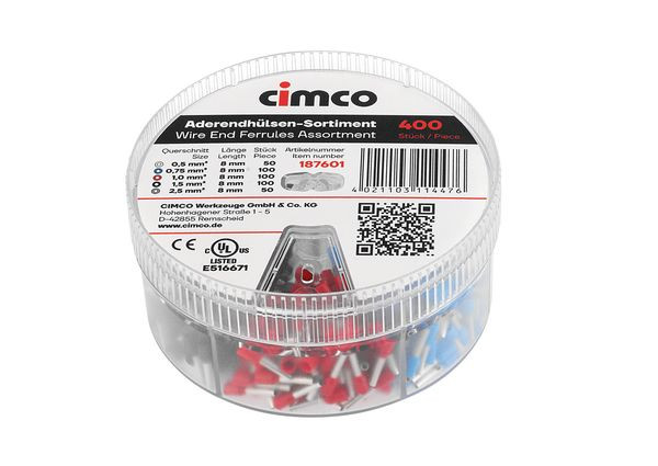 Aderendhülsen-Streudose mit einfacher Querschnittszuordnung der Fächer. Isolierte Aderendhülsen nach Farbreiche 1, gefertigt aus hochwertigen Kupfer-DHP. Die Oberfläche ist galvanisch verzinnt mit einer Mindestschichtstäke von 3 µm für einen maximalen Korrosionsschutz. Der Kunststoffkragen aus Polypropylen sorgt für ein einfaches Einführen der Kupferleiter. Temperaturbeständig bis 105°C, für Leitungen Klasse 5 / 6 nach IEC 60228. Das Set beinhaltet Aderendhülsen in den Größen 0,5 mm², 0,75 mm², 1 mm², 1,5 mm² und 2,5 mm²