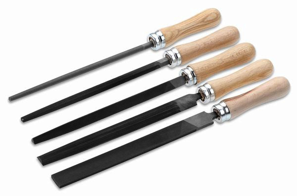 Werkstatt-Feilen-Sortiment, 5-Teilig mit Kreuzhieb, Hieb 2 (mittelfein), Länge 200 mm; mit Holzheften, geeignet für Metall, aber auch Holz und Kunststoff; je 1 Stück