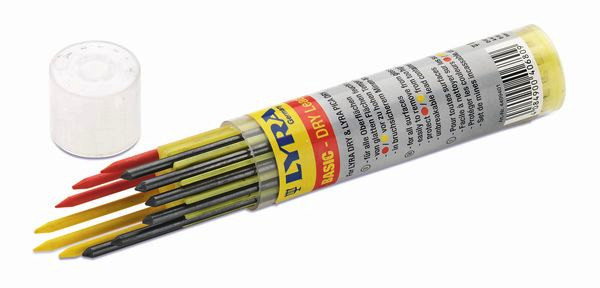 Cimco-Baumarker. Funktionelle Druckmechanik für automatischen Minenvorschub, einfache Ein-Hand-Bedienung durch Clip, integrierter Spitzer mit Führung – erlaubt schnelles Spitzen direkt an der Hose, Minen problemlos von vorne und hinten nachfüllbar, für alle Oberflächen (Holz, Metall, Glas, Keramik etc.), enthaltene Spezialgraphitmine von glatten Oberflächen feucht abwischbar, separat erhältliche farbige Ersatzminen für Einsatzmöglichkeiten auf hellen und dunklen Untergründen. Ersatzmine zu (Cimco-Artikelnr. 21 3150)- 12er Pack Ersatzminen (3x Rot, 3x Gelb, 6x Graphit)