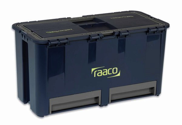 raaco Compact- der vielseitige Werkzeugkoffer für den Profi. Wohl durchdachte Gestaltung bis ins kleinste Detail hat in Kombination mit schlagfestem Kunststoff eine Serie robuster Werkzeugkoffer für alle Zwecke hervorgebracht – kompaktes Design mit hoher Flexibilität. Compact-Koffer haben ein geringes Eigengewicht, sind aber gleichzeitig sehr belastbar. Und sie nutzen nicht ab, rosten oder verbeulen nicht. Das verwendete Material ist langlebiges Polypropylen, das auch gegen die meisten Säuren und Chemikalien resistent ist. Den Compact gibt es in mehreren Varianten und Größen. Ganz gleich, für welche Variante Sie sich entscheiden – Sie erhalten immer ein preisgekröntes Design mit großer Haltbarkeit: Die Koffer wurden mit 6 internationalen Fachpreisen für Innovation, Design und Anwenderfreundlichkeit ausgezeichnet. COMPACT 27, Werkzeugkoffer mit herausnehmbarem Werkzeugträger und 2 Schubladen für kleine Teile, inkl. 6 Einsätzen für die Unterteilung des Trägers, Farbe: raaco blau; Tragvermögen: 30 kg; Gewicht: 2.328g; Größe: TxBxH 239x474x248 mm