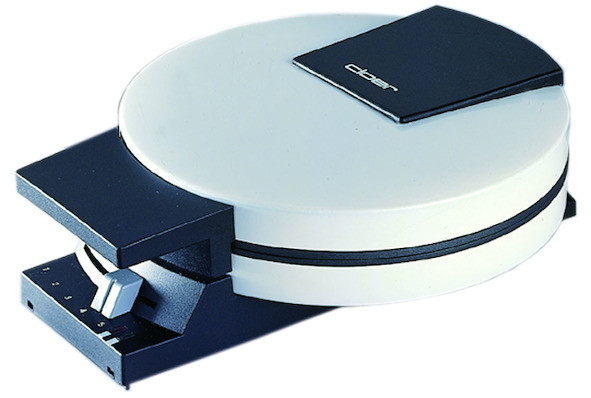 für hauchdünne, knusprige Hörnchen 15 cm Ø, Antihaftbeschichtung, stufenlos wählbarer Bräunungsgrad, Backampel, innenliegendes Scharnier, Fettauffangrille, Kabelaufwicklung mit Steckerdepot, platzsparende, auf den Griffen stehende Aufbewahrung