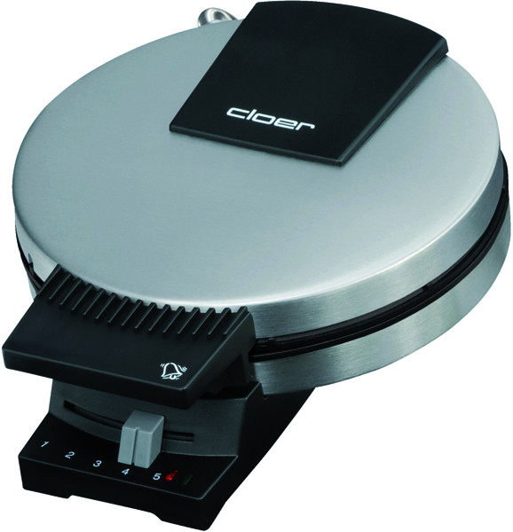 für hauchdünne, knusprige Hörnchen 15 cm Ø, Antihaftbeschichtung, besonders zuckerresistent durch Zwei-Komponenten-Beschichtung, besonders schwere Platten, stufenlos wählbarer Bräunungsgrad, optische und akustische Fertigmeldung, innenliegendes Scharnier, Fettauffangrille, Kabelaufwicklung mit Steckerdepot, platzsparende, auf den Griffen stehende Aufbewahrung