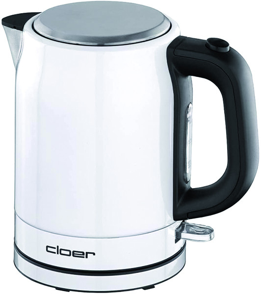 kabellos, 360° Sockel, herausnehmbarer Kalkfilter, verriegelter Sicherheitsdeckel, öffnet auf Knopfdruck, Ausgussabdeckung aus Silikon, außen liegende Wasserstandsanzeige, An-/Ausschalter mit Kontrolllampe, Trockengeh-/Überhitzungsschutz, 1850 - 2200 W