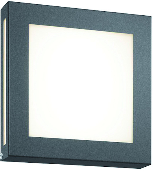 Edelstahl-Wandleuchte, Lichtaustritt nach vorne und seitlich, anthrazit pulverbeschichtet, Opalglas, inklusive LED 12 Watt, nicht tauschbar, warmweiß ca. 3000 K, ca. 485 Lumen, HxBxT 22x22x4,5 cm, IP44