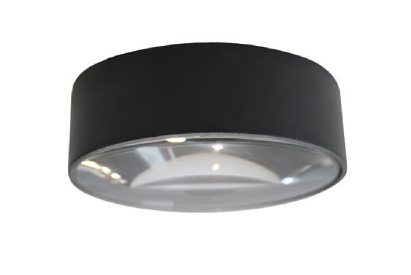 LED-Deckenleuchte, anthrazit, Aluminium pulverbeschichtet, Lupenglas klar, Abstrahlung nach unten, 1 x LED 6 Watt, ca. 3000 Kelvin, 540 Lumen, DxH 10,7x3,6 cm, IP65