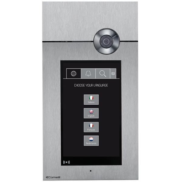 Türstation Serie 316 Touch Video, VIP System. Türstation für Unterputz-Montage mit 3mm starker Edelstahlplatte V4A und übersichtlichem kapazitiven 8"-Touchscreen aus vandalismussicherm Glas. Betrieb mit konfigurierbarer Grafik (Namensverzeichnis mit Suche, statische virtuelle Tasten bis 10 Teilnehmer, alphabetisches Telefonbuch, max. 8-stelligen Zahlencode). Weitere Einstellmöglichkeiten: verändern der Sprache, Helligkeit und Namen/Codes. Ausgestattet mit RFID-Lesegerät für die lokale Türöffnerbetätigung, mit einem zusätzlichen Relais für verschiedene Funktionen sowie Helligkeitssensoren für die optimale Regelung des Betriebs. Namenssuche wie im Telefonbuch eines Smartphone: wischen der Namensliste oder Auswahl des Anfangsbuchstaben eines Nachnamen. Der Ruf kann auch durch direktes Eintippen des Teilnehmercodes ausgeführt werden. Wahlweise Eingabe eines individuellen Begrüßungstextes sowie die Auswahl von zwei Benutzersprachen. Ausgestattet mit einem RFID- Lesegerät für die lokale Türöffnerbetätigung und einem zusätzlichen Relais für verschiedene Funktionen. Speichert bis zu 4000 Teilnehmernamen, 4000 Türöffner-Passwörter und 4000 RFID- Schlüssel. Mit sämtlichen Leistungsmerkmalen und Produkten der Baureihe VIP kompatibel. Inkl. Lautsprecher Video Art. 4682HD sowie Unterputzgehäuse. Anschlussspannung 33V DC mit Art.1596B. Abmessungen: 342x182x3mm.